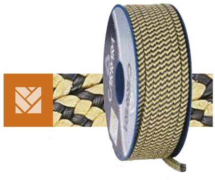 GF7676K. Empaquetadura realizada con hilo GFO® GORE® e hilo aramídico en diseño cebrado.