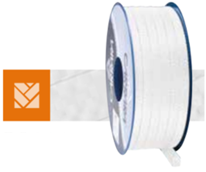DINAWHITE. Empaquetadura específica para fábricas de papel, realizada con un hilo compuesto especial con una carga de rotura elevada y un coeficiente de rozamiento bajo, para garantizar un rendimiento elevado en el tiempo.